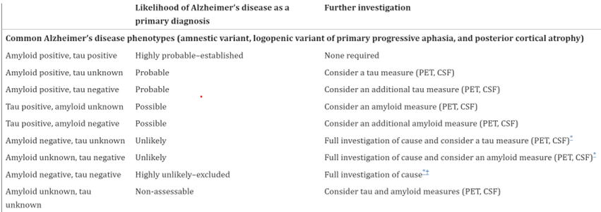 - Dubois, B., Villain, N., Frisoni, G. B., Rabinovici, G. D., Sabbagh, M., Cappa, S., Bejanin, A., Bombois, S., Epelbaum, S., Teichmann, M., Habert, M. O., Nordberg, A., Blennow, K., Galasko, D., Stern, Y., Rowe, C. C., Salloway, S., Schneider, L. S., Cummings, J. L., & Feldman, H. H. (2021). Clinical diagnosis of Alzheimer's disease: recommendations of the International Working Group. Lancet Neurol, 20(6), 484-496. https://doi.org/10.1016/s1474-4422(21)00066-1