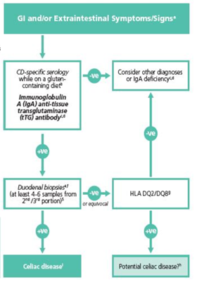 - Paul, S. P., Hoghton, M., & Sandhu, B. (2017). Limited role of HLA DQ2/8 genotyping in diagnosing coeliac disease. Scott Med J, 62(1), 25-27. https://doi.org/10.1177/0036933016689008